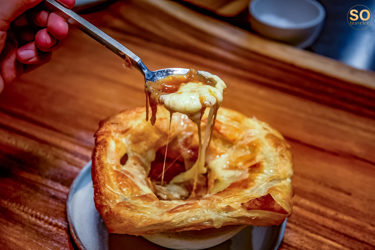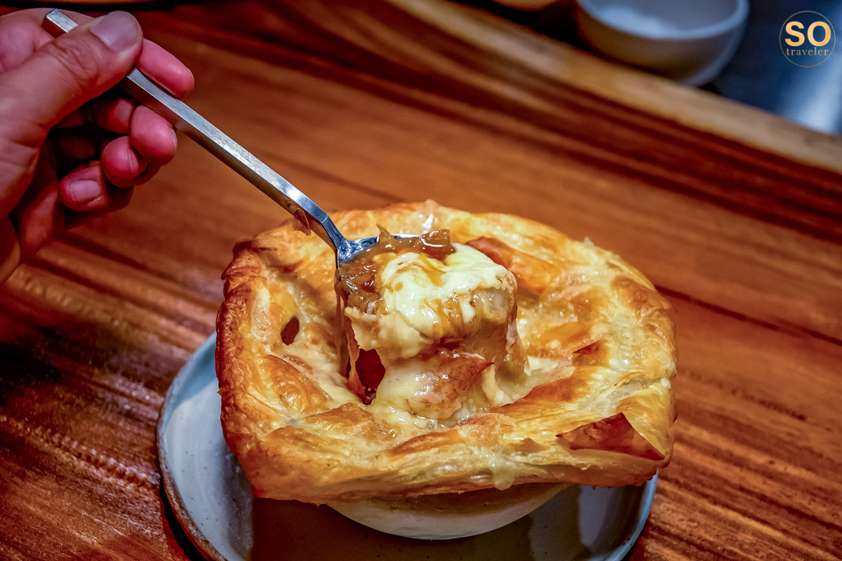 ในส่วนของ Soups จะเป็นอีกหนึ่งเมนูที่หลายๆคนชอบ Classic french onion soup, beef stock, comte, puff pastry ซุปหัวหอมสไตล์ฝรั่งเศส ที่ปรุงจากซุปเนื้อเข้มข้น เสิร์ฟพร้อมชีสเยิ้มๆและแป้งพายนุ่มๆ อร่อยห้ามพลาดเลยล่ะ