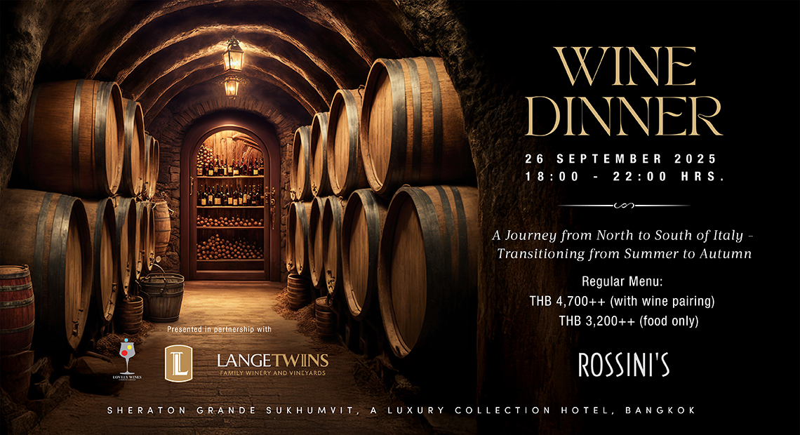 Rossini’s at Sheraton Grande Sukhumvit, a Luxury Collection Hotel. Some journeys can only be taken with the senses. On 26 September 2025, Rossini’s invites you to embark on an unforgettable voyage across Italy — one that begins in the cool Alpine North, drifts through sun-kissed valleys, and ends in the warmth of the Southern Coast. This is not merely a dinner; it is a story told through food and wine.
