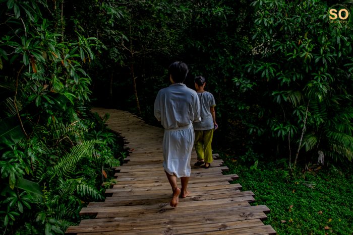 เมื่อเปลี่ยนชุดเสร็จแล้วเรียบร้อย เทอราปิสจะพาเราไปที่ห้องนวด ซึ่งจะเป็นวิลล่าแยกหลัง เป็นเหมือนหมู่บ้านสปา ที่มีความเป็นธรรมชาติสูงมาก