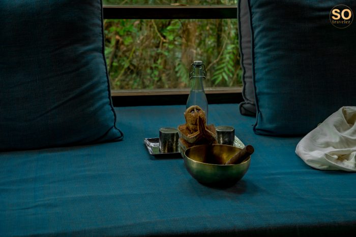 เมื่อถึงเวลานัดหมายที่จะทำสปา เราตื่นเต้นเป็นอย่างมากที่จะได้มีโอกาสได้ลองทำทรีตเมนต์ของ ซิกส์เซ้นส์ สปา พนักงานต้อนรับอย่างอบอุ่น เสิร์ฟ welcome drink แล้วก็แนะนำเมนูสปาของทางซิกส์เซนส์ สำหรับเมนูที่เราเลือกคือ Oriental Massage ซึ่งเป็นการนวดอโรมาน้ำหนักปานกลาง เน้นความผ่อนคลาย