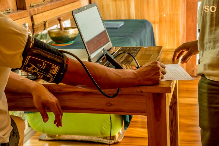 เป็นการตรวจสุขภาพโดยผู้เชี่ยวชาญ เราขออนุญาตเรียกผู้เชี่ยวชาญว่าดอกเตอร์ เพราะเค้าจบปริญญาเอกทางด้านนี้มาโดยตรง เราแวะมาทำ Wellness Screening ตั้งแต่วันแรกที่มาถึง เริ่มต้นตั้งแต่การสัมภาษณ์ ไลฟ์สไตล์ การใช้ชีวิตประจำวัน และตามด้วยการตรวจวัดด้วยเครื่องมือ ที่จะรายงานค่าต่างๆของร่างกายออกมาเป็นข้อมูลเชิงลึกละเอียดมาก