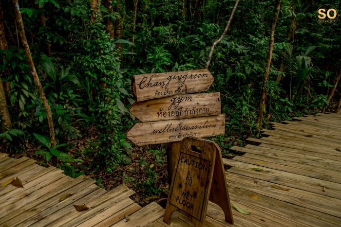 ทางเดินเชื่อมแต่ละจุดภายในซิกส์เซ็นส์สปาทำด้วยไม้ เดินแล้วรู้สึกสัมผัสความเป็นธรรมชาติอย่างใกล้ชิด