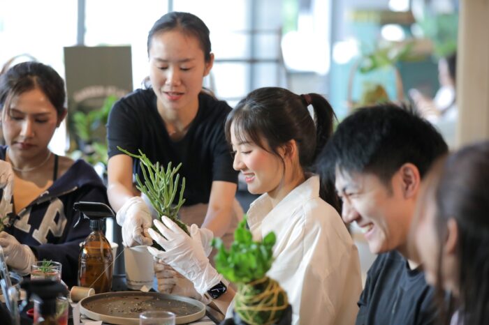 สำหรับกิจกรรมต่อมายึดโยงกับหลักปรัชญาเรื่อง “ความผ่อนคลาย (Calm)” จัดกิจกรรมเวิร์กช็อปปลูกต้นไม้สไตล์ญี่ปุ่นแบบโคเคดามะโดยร้านการ์เด้น แอตลาส ศิลปะการปลูกต้นไม้แบบโคเคดามะเชื้อเชิญให้แขกทุกท่านได้ออกแบบรูปทรงของต้นมอสด้วยตนเอง ทำให้ได้เข้าถึงช่วงเวลาอันเงียบสงบที่ร่างกายและจิตใจผ่อนคลายไปกับงานศิลปะจากธรรมชาติที่อยู่ตรงหน้า ประสบการณ์นี้ยังสะท้อนถึงความมุ่งมั่นของแบรนด์สปา บาย เจดับบลิว ที่ต้องการสรรสร้างเส้นทางสู่ความสงบและการฟื้นฟูร่างกายและจิตใจในรูปแบบที่เข้าถึงง่าย
