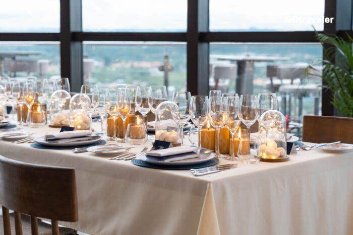 ห้องอาหารแบ่งพื้นที่ออกเป็นสองโซน Indoor Dining Room ที่ตกแต่งอย่างประณีตในสไตล์โมเดิร์นเรียบหรู เหมาะสำหรับดินเนอร์ส่วนตัวท่ามกลางแสงไฟนวลตา และ Outdoor Terrace ที่เปิดรับวิวทะเลและท้องฟ้ายามค่ำ เหมาะสำหรับการนั่งจิบเครื่องดื่มหรือรับประทานอาหารใต้แสงดาว ท่ามกลางลมทะเลอ่อน ๆ และเสียงคลื่นที่กลายเป็นดนตรีประกอบอย่างเป็นธรรมชาติ
