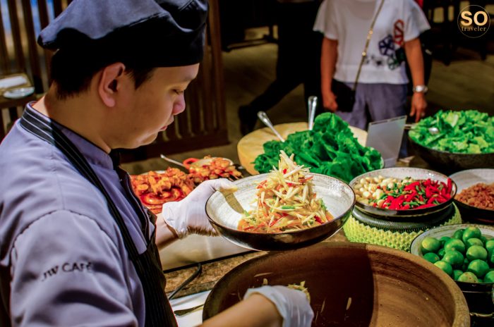 สเตชั่นอาหารไทย ที่น้อยนักเราจะแวะชิมเมื่อทานบุฟเฟ่ต์ แต่ JW Café กลับทำให้เราอยากทานทุกเมนู ด้วยความเก่งของการนำเสนอและฝีมือการทำอาหารไทยที่ถึงเครื่องพริกแกงของเชฟธนัย จิตมโนวรรณ ทำให้เราตั้งใจที่จะมาชิมเมนูอาหารไทยโบราณ ที่หาทานได้ยากจากที่นี่ เป็นจุดขายของห้องอาหารข้อหนึ่งที่ได้เชฟที่มีความถนัดทางด้านอาหารไทยโบราณแบบรู้ลึกและเข้าใจในรสชาติอาหารไทยโบราณอย่างถ่องแท้มาประจำอยู่ที่นี่ ทำให้แต่ละวันในสัปดาห์เชฟสามารถทำเมนูอาหารไทยโบราณออกมาเสิร์ฟให้ทานกันได้แบบไม่ซ้ำ