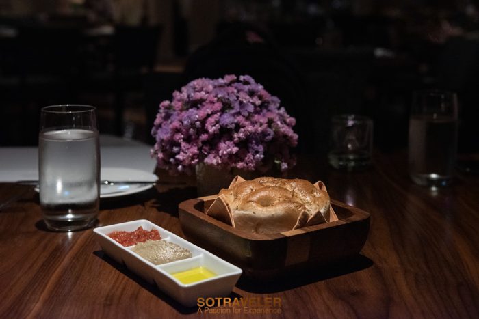 ซุปอีกรูปแบบหนึ่งที่เชฟทาโนเลือกทำมาเสิร์ฟในวันนั้นคือ Gazpacho caldo di pomodoro con seppie, baccala’ e capesanta (720++ บาท) ‘กัซปาโช (Gazpacho)’ หรือซุปมะเขือเทศเย็นที่เรารู้จักกันนั่นเอง แต่กัซปาโชของเชฟทาโนถ้วยนี้ไม่ธรรมดา เพราะเลือกเสิร์ฟแบบอุ่นร้อน และเพิ่มรสชาติให้กับเนื้อซุปด้วย baccala’ หรือปลาแห้ง ที่ช่วยทำให้รสชาติของซุปมีความลงตัวมากขึ้น แต่ก็ยังไม่ทิ้งความเปรี้ยวหวานอันเป็นเอกลักษณ์ของมะเขือเทศ เสิร์ฟพร้อมหอยเชลล์ฮอกไกโด และปลาหมึกเนื้อนุ่มเด้งท็อปไว้ด้านบน