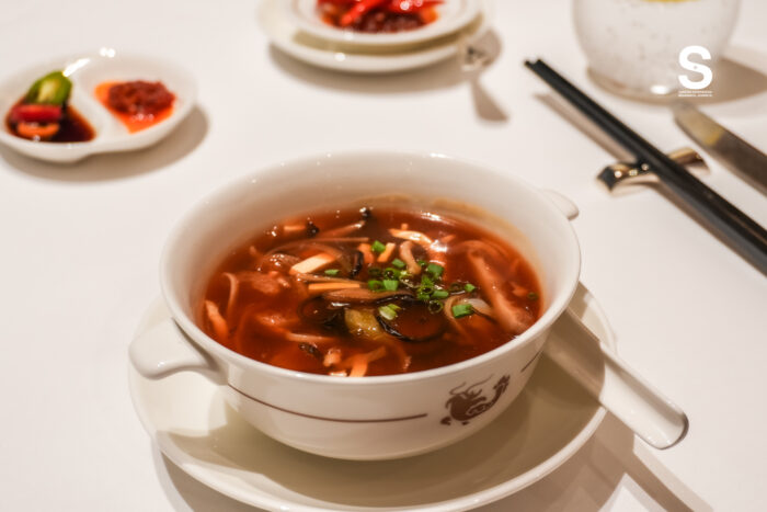 เริ่มต้นเปิดต่อมรับรสด้วย พัฟเผือกทอด ที่ทอดจนเลเยอร์ด้านนอกฟูกรอบประดุจงานคราฟต์ ขณะที่ด้านในมอบความเนียนนุ่มหอมละมุน ก่อนจะตามด้วย ซุปเผ็ดเปรี้ยวเนื้อปูอลาสก้า รสชาติเข้มข้นถึงแก่นที่ช่วยปลุกความสดชื่นและกระตุ้นการเผาผลาญได้อย่างทรงพลัง