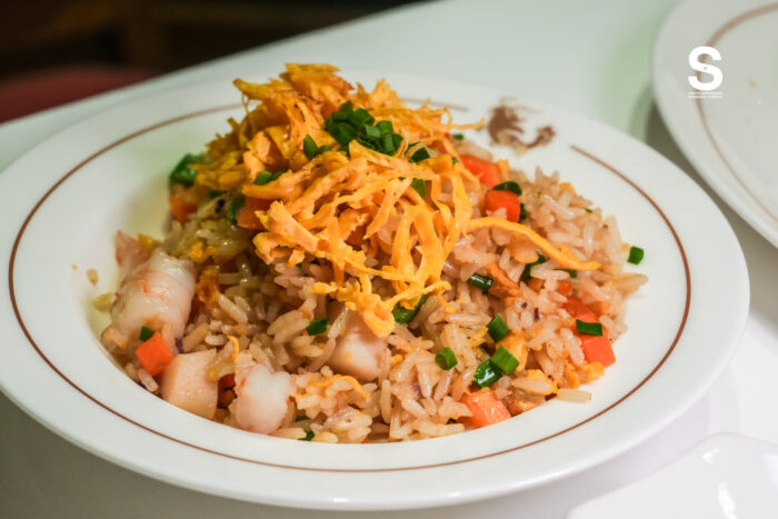 ปิดท้ายมื้อด้วยความเรียบง่ายที่เหนือระดับกับ ข้าวผัดเหม่ยเจียง เม็ดข้าวสีทองเรียงตัวสวยที่ผ่านการคั่วบนกระทะเหล็กด้วยไฟแรงจนหอมกลิ่น Smoky (Wok Hei) อันเป็นเอกลักษณ์