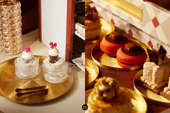 เมนูของหวานที่มีส่วนผสมชาจาก Karun ประกอบด้วย บาวารัวส์ชาไทย เค้กสปันจ์รสช็อคโกแลตส้ม ทานคู่กับครีมชาไทย ท๊อฟฟี่ คีย์ ไลม์ พาย เสิร์ฟคู่กับเครมบูเล่ชาไทยคาราเมล มาการองชาไทยและเอแคลร์ชาเขียวเสิร์ฟพร้อมครีมมอคค่า และคาเวียร์ชาไทยไร้น้ำตาล นอกจากนี้ยังมีสโคนผลไม้แห้งและถั่ว เสิร์ฟคู่กับคล็อตเตดครีมแยมแอปริคอต และครีมชีสชาไทย