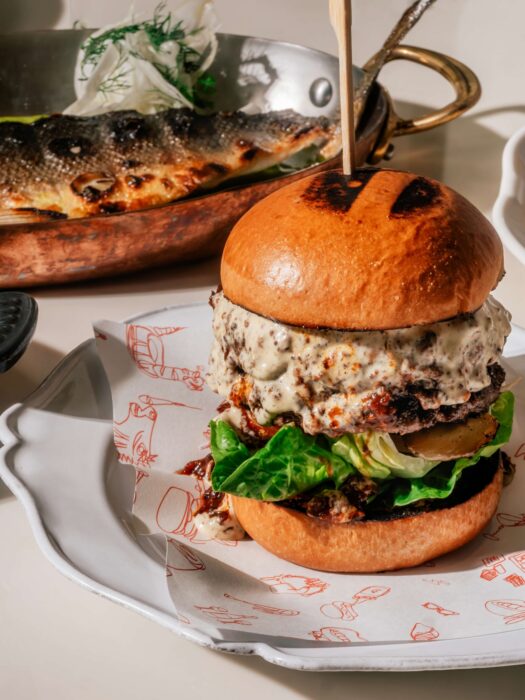 ไม่เพียงเท่านี้เรายังมี The Standard Wagyu Burger เมนูซิกเนเจอร์ระดับตำนาน มาพร้อมแพตตี้เนื้อวากิว เบคอนแจม ซอสDijon แตงกวาดองโฮมเมด ชีสเชดด้าร์ และขนมปังมันฝรั่งประกบปิดท้าย Baby Chicken เนื้อไก่สุดนุ่มกินคู่กับซอสฮานาเบโรพิริพิริคืออีกหนึ่งเมนูที่ไม่อยากให้พลาด หรือสายพาสต้า Lamb Pappardelle พาสต้าเส้นสดคลุกเคล้าเนื้อแกะฉีกที่นุ่มละมุนลิ้นก็ลงตัวอย่างบอกไม่ถูก สำหรับสายซีฟู้ด ยังมีปลากะพงย่างและกุ้งลายเสือย่างที่พร้อมพาไปสู่ความฟินคอมพลีทมื้อหลักแบบจอยๆ