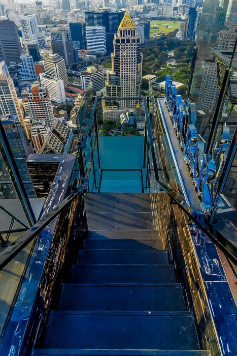 ไฮไลท์ที่ทุกคนไม่พลาดที่จะมาสัมผัสนั่นคือ ทางเดินกระจกใส “มูน วอล์ค” (Moon Walk) สะพานกระจกที่ยื่นออกไปนอกอาคาร ขอบอกว่าเฟียสสุด ๆ สำหรับการถ่ายภาพ เพราะจะเห็นวิวเมืิองมหานครที่ชัดเจน