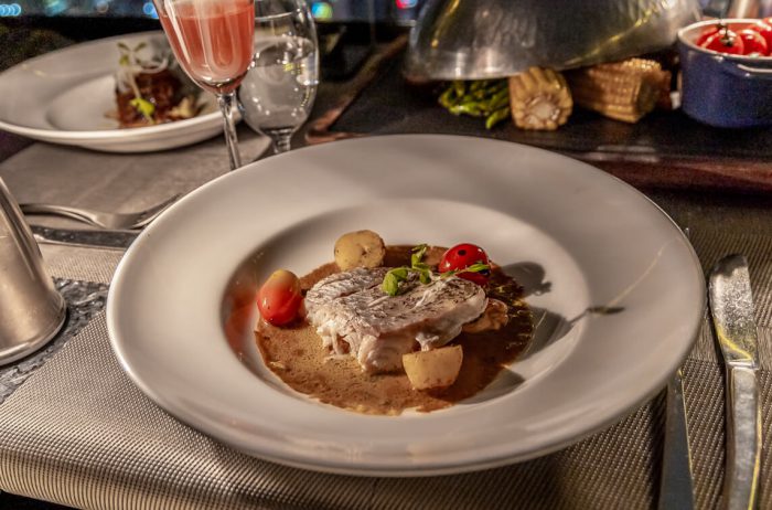 หลังจากที่ได้จิบค็อกเทลเคล้าวิวเมืองกันไปได้ซักระยะ ก็ได้เวลาที่จะไปทานดินเนอร์กันต่อที่ห้องอาหารเวอร์ทิโก้ (Vertigo) ซึ่งตั้งอยู่บนชั้นดาดฟ้าเช่นเดียวกัน เพียงแค่เราเดินข้ามไปอีกฝั่งก็ถึงแล้ว