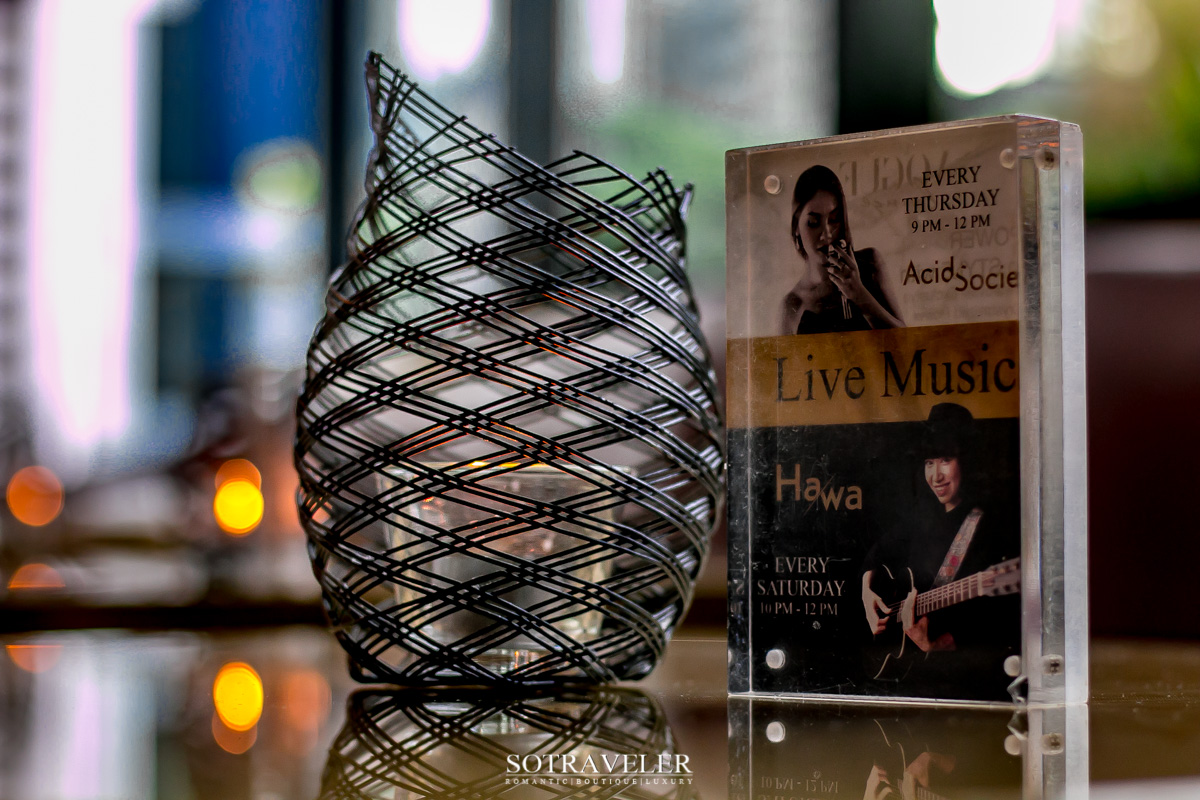 ภายในเลาจน์ตกแต่งด้วยสีดำ-ทอง ซึ่งแสดงออกถึงความหรูหราและเป็นส่วนตัว รวมไปถึงตัวบาร์ที่เต็มไปด้วยเครื่องดื่มและค็อกเทลหลากหลายชนิดที่พร้อมเสิร์ฟให้คุณลิ้มลองได้ตั้งแต่ 5 โมงเย็นเป็นต้นไป