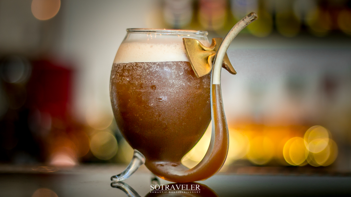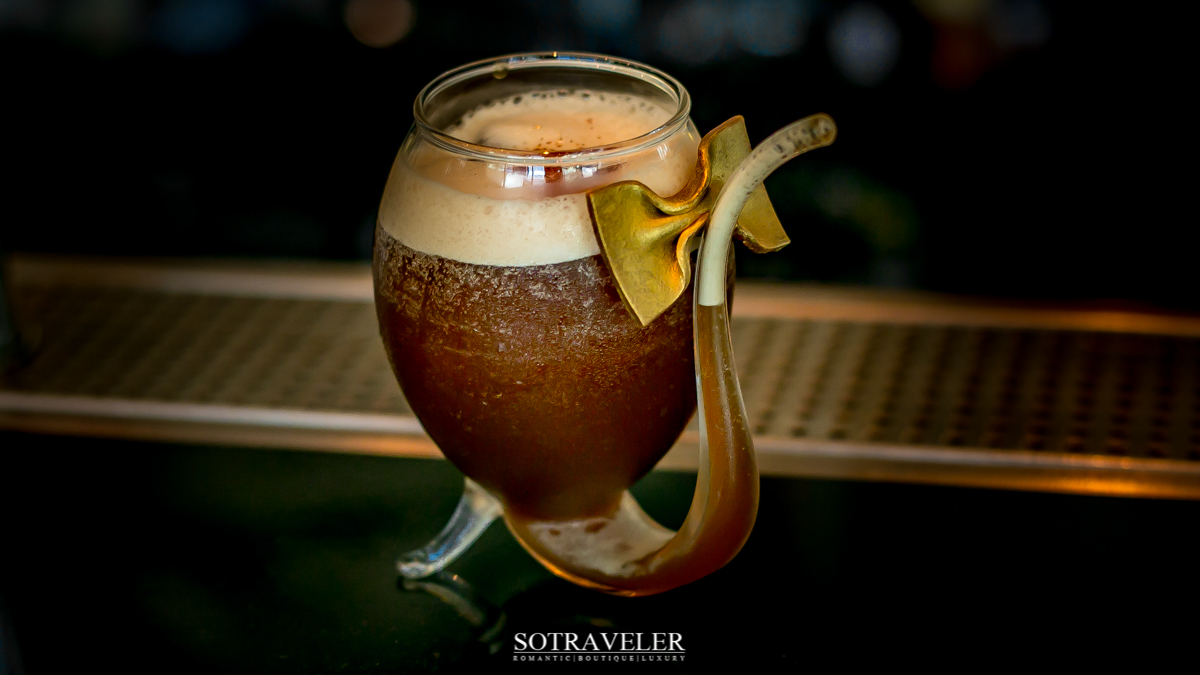 ค็อกเทลามิสเตอร์บราวน์มีส่วนผสมของกาแฟ (Coffee) และจิน (Gin) บอดี้ของกาแฟค่อนไปทางเข้ม รสชาติขมอมหวาน แต่ยังคงรู้สึกสดชื่น ท้อปด้านบนด้วยโฟมฟองที่มีผงซินนามอนโรยอยู่ คล้ายๆคาปูชิโน่อยู่เหมือนกันนะ เวลายกดื่มซินนามอนจะอยู่บริเวณจมูกของเราพอดี ทำให้เวลาดื่มก็จะได้รับกลิ่นหอมจากกาแฟและซินมามอนไปด้วย เสิร์ฟในแก้วที่มีลักษณะคล้ายไปป์ (Pipe) ตกแต่งด้วยช็อคโกแลตเคลือบสีทองรูปโบว์หูกระต่าย …