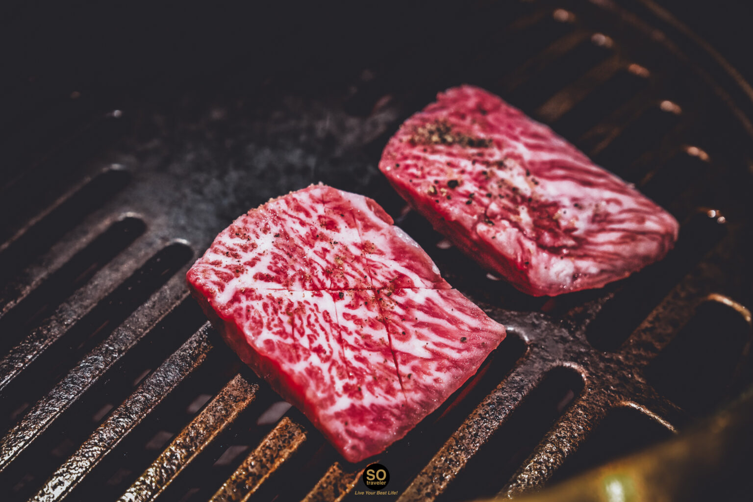ในส่วนของเมนูเนื้อย่าง ต้องบอกว่าประทับใจทุกเมนู อย่างเช่น Yakisashi เนื้อลายหินอ่อนติดมัน เมื่อย่างบนเตาไฟแล้วให้กลิ่นหอมมันเรียกน้ำย่อยได้ดีมาก เสิร์ฟให้ทานคู่กับซอสถั่วเหลืองและวาซาบิสด ช่วยเสริมรสชาติให้ดียิ่งขึ้น