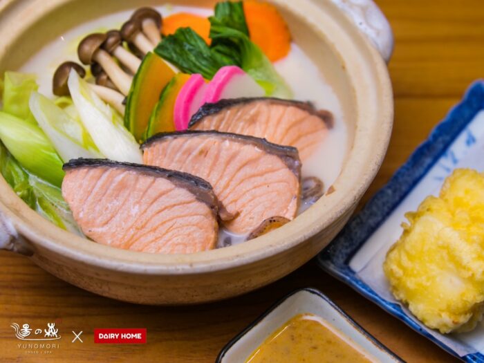 - Dairy Dream Nabe — หม้อไฟสไตล์ญี่ปุ่นในน้ำซุปน้ำนมเข้มข้น หอมกลมกล่อม เสิร์ฟพร้อมท็อปปิ้งให้เลือกถึง 3 แบบ: Fresh Milk Tofu, Juicy Chicken Chunks, และ Fresh Salmon